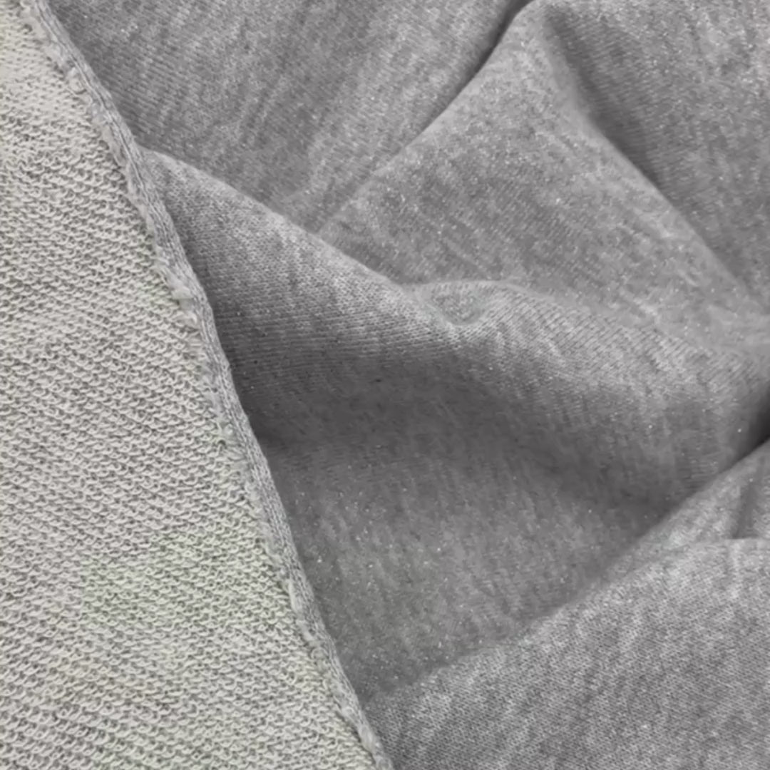 This stunning grey cotton french terry with a subtle metallic sparkle is ready for your coziest makes - think hoodies, joggers, sweaters, dresses… anything that needs a little extra magic. ✨