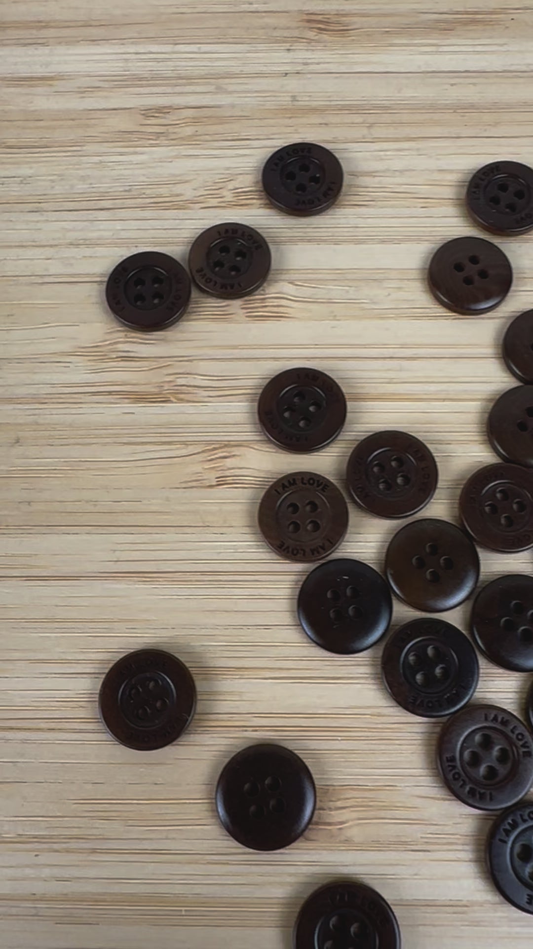 Add a warm, earthy touch to your sewing projects with these charming brown plastic buttons. Featuring a smooth finish and classic round shape and the words "I am Love" engraved on them, they’re perfect for everything from cozy sweaters to handmade bags and accessories.